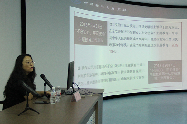 此次培训特邀请到中共盘锦市委党校的王娟教授,为全体与会者进行了《不忘初心、牢记使命——学习贯彻党中央关于“不忘初心、牢记使命”主题教育的部署和要求》主题教育宣讲。王娟教授在阐述了此次主题教育的背景后,从深刻认识开展“不忘初心、牢记使命”主题教育的重大意义、全面把握“不忘初心、牢记使命”目标要求,以及扎实推动主题教育深入开展的重要举措三个方面,讲述了此次“不忘初心、牢记使命”主题教育的深刻现实意义,希望在座所有党员干部能够牢牢把握“守初心、担使命、找差距、抓落实”的总要求,把学习教育、调查研究、检视问题、整改落实贯穿主题教育全过程,同时强化分级分类指导和加强组织领导,切实查找问题,转变工作作风,在认真开展此次主题教育的同时,扎实推进工作,为加快推动省级高水平现代化职业院校建设贡献自己的力量。