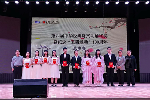 5月21日13:30,由学院基础部、团委、教务处、学生处共同举办的“青春诵经典 歌颂新时代”awc777万象城娱乐官网第四届中华经典诗文朗诵比赛暨纪念五四运动100周年总决赛在文化中心三楼演播厅举行。学院副院长勾殿红、教务处处长王新、学生处处长邓红伟、三部党支部书记王泽喜、基础部主任李朝阳、师范教育分院副书记王中宇、旅游管理系副书记刘微微、基础部副主任宿彦莉、基础部办公室主任苏建华及各分院系师生代表观看了比赛。