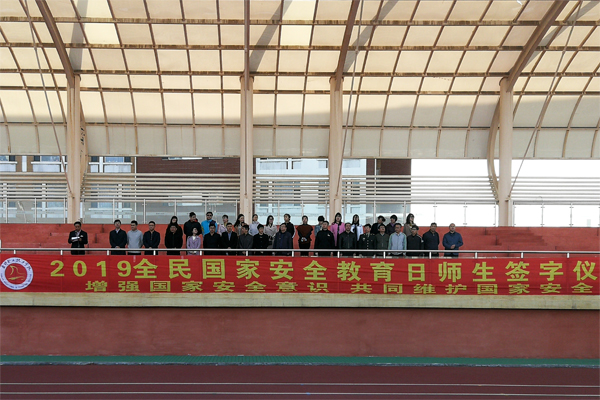 为深入学习贯彻习近平新时代中国特色社会主义思想,坚持总体国家安全观,着力防范化解重大风险,全面提升全院师生国家安全意识,在全国第四个“全民国家安全教育日”到来之际,4月15日早晨,在学院体育场开展了“2019全民国家安全教育日”师生签字活动。学院学生工作处、武装工作部、安全保卫处、团委、各分院系的领导、老师及全体在校学生参加了活动。此次活动由武装工作部王俊杰老师主持。