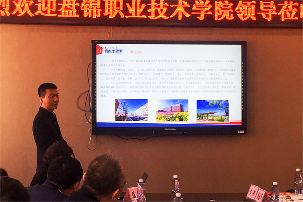 抵达当日,葫芦岛市教育局主要领导携葫芦岛一职专、兴城职业教育中心等十五位中职及高中领导在葫芦岛一职专举行欢迎仪式并召开招生研讨会。首先由罗革云处长对学院的基本情况进行系统介绍,接下来由化学工程系陈星主任及机电工程系王辉主任分别对两个系的相关专业进行讲解和推介;李辉副院长向葫芦岛教育界同仁的热情欢迎表示感谢,对学院情况进行了说明,并对此次葫芦岛之行充满希望。