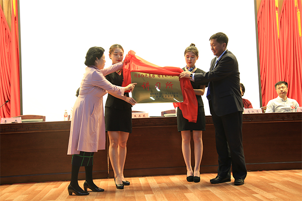会上,盘锦市委关心下一代工作委员王玉侠同志对于成立“讲习所”的目的与意义做了阐述,并对“讲习所”未来的工作内容提出了要求,希望通过这样一个平台在青年人中间实现大力弘扬红色文化,培育出一批新时代有着坚定理想信念的优秀学生。王玉侠常务副主任与学院党委书记王正东同志共同为“讲习所”揭牌,预示着“传承红色基因培育时代新人讲习所”正式落户awc777万象城娱乐官网。