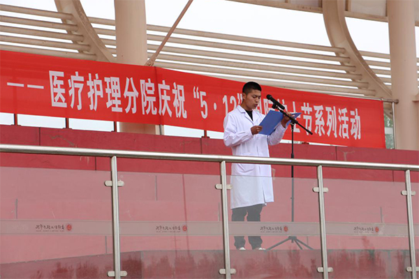 学生代表海健同学表达了对分院教师的感恩之情和对即将开始的临床实习的认识和积极态度,并做出了终身遵循护理职业道德的承诺。
