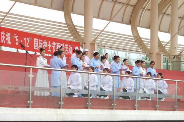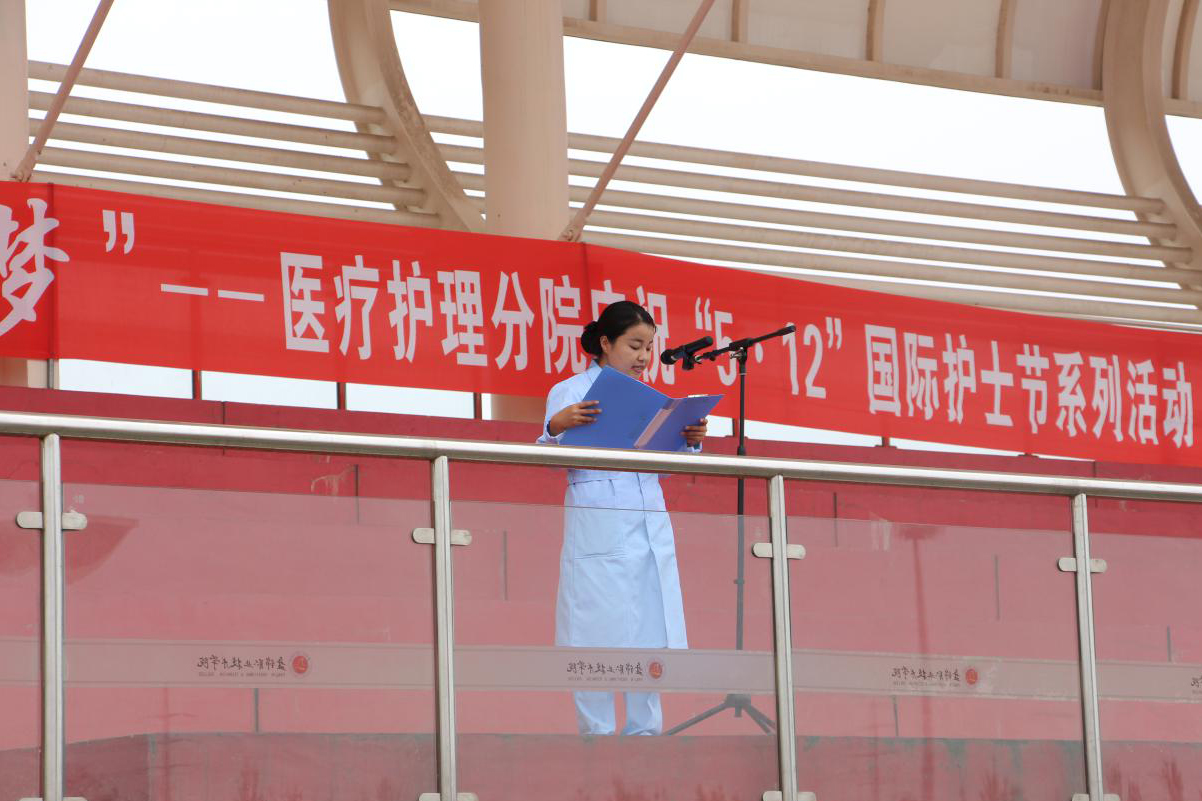 王莹老师带领全体学生庄严宣誓:“以救死扶伤、防病治病,实行社会主义的人道主义,全心全意为人民服务为宗旨,履行护士的天职;以自己的真心、爱心、责任心对待我所护理的每一位病人;我将牢记今天的决心和誓言,接过前辈手中的蜡烛,把毕生精力奉献给护理事业”。同学们庄严地说出了自己的心声,决心像南丁格尔那样为护理事业奉献终生。