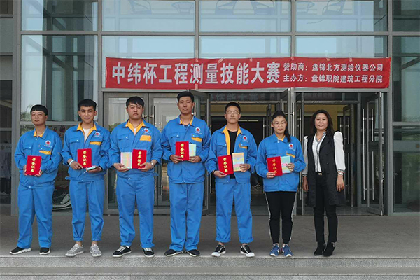上午的开幕式上,建筑工程分院郑敏丽院长对赞助企业鼎力支持学院建筑专业教育教学表达了充分的肯定与谢意,并对同学们寄予期望,希望他们以赛促学打好专业基础,为更好的成长成才铺平道路。接下来,作为本次比赛评委的中纬测量系统有限公司王谦经理与盘锦北方测绘仪器公司相关技术人员关于全站仪的使用对学生进行了系统的强化培训,使学生对全站仪的操作及用途有了更深层次的认识与了解。比赛于午后12点半正式开始,本次比赛共分8个小组,每组3名同学参赛,比赛规则是在规定时间内完成各组的测量任务,保证测量值的准确无误。经过激烈的比赛,8组同学都圆满的完成了各自的测量任务。本次比赛共评出了一等奖一组,二等奖二组,三等奖三组。17级建筑工程技术班迟必清等3位同学以非常精准的测量数值和最少的时间完成比赛并获得本次比赛的第一名。