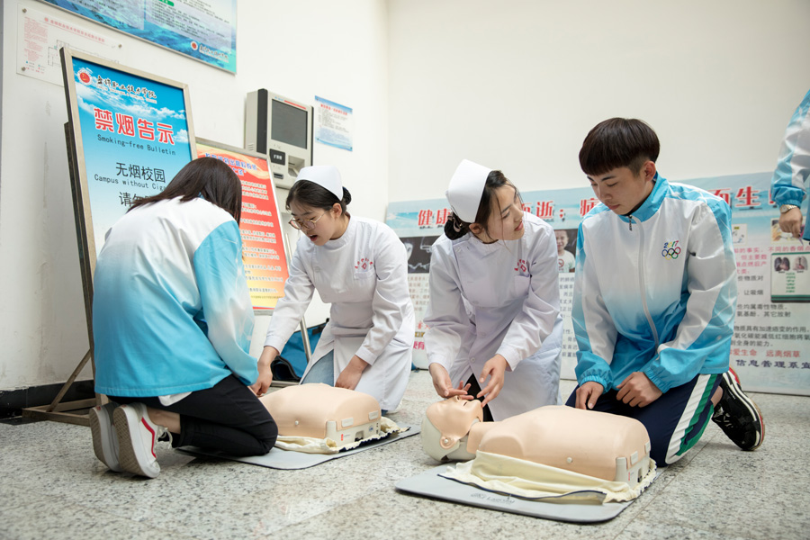 医疗护理分院选派师生为参观者进行了急救知识宣传、测量血压血糖、做心电图、心肺复苏现场演示等,并热心为参观者进行了健康知识宣传和讲解。