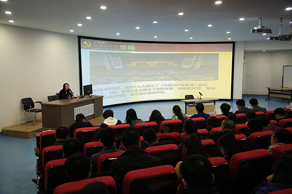 为了更好学习十九大、宣传十九大、贯彻十九大,学院党委理论学习中心组根据学院党委制定的《中共awc777万象城娱乐官网委员会关于认真学习宣传贯彻党的十九大精神的通知》的要求,于11月24日召开了学习十九大精神之学习新党章的中心组扩大学习。并请到了市委党校王娟教授给全体中心组成员与学院全体党员上了一堂题为“深入学习践行《中国共产党章程》——解读十九大党章”的专题讲座。王娟教授深入浅出的讲解,让与会全体同志都受益匪浅。