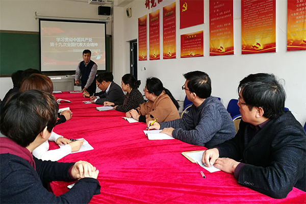 孙宏伟主委对十九大报告的主题、历史使命、新时代中国特色社会主义思想、主要矛盾等几方面进行了解读。他强调,习近平总书记的报告高屋建瓴,内涵丰富,对于民主党派的各项工作都有很好的指导意义。要不断学习关于统一战线、新时代中国特色社会主义参政党的新表述、新内涵,把学习报告与民盟的中心工作紧密结合,与学院发展建设做贡献相结合。
