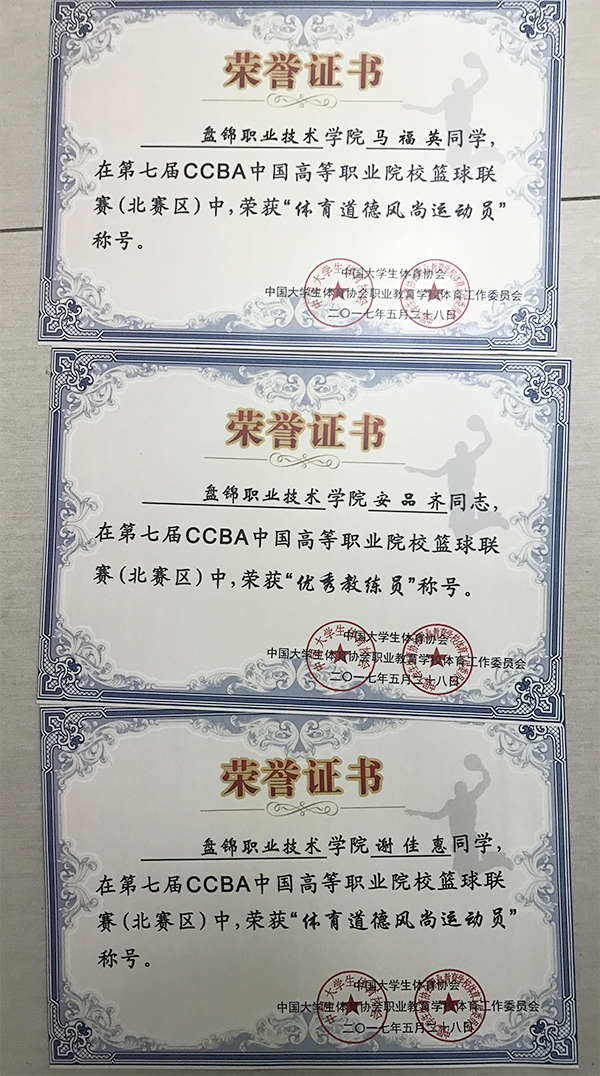 5月23日至28日,由中国大学生体育协会主办、职业教育学校体育工作委员会协办、山东科技职业学院承办的第七届CCBA全国高等职业院校篮球联赛(北区)比赛在山东潍坊举行。来自中国北方16个省、市、自治区的30余支男、女代表队参加了本次比赛。经过六天的激烈角逐,万象城官网女子篮球队代表辽宁省最终取得女子组第八名。安品齐老师被评为优秀教练员,马福英、谢佳惠同学被评为优秀运动员。