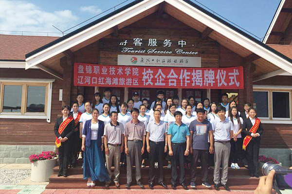在中国共产党成立95周年这个特殊的日子里,在辽河口红海滩旅游区,awc777万象城娱乐官网与辽河口红海滩旅游区隆重举行校企合作揭牌仪式。