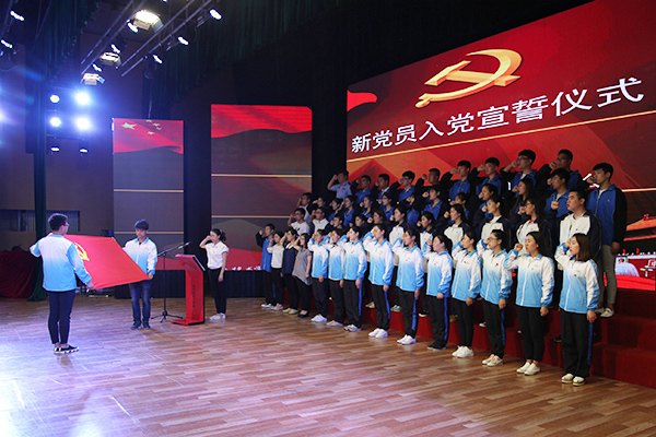 宣誓仪式由团委副书记蔡志远主持。在建党组织员田琳同志的带领下,50名预备党员面对鲜红的党旗,庄严地举起右手,向党旗宣誓,立下了他们人生中矢志不渝的誓言,表达了为共产主义事业奋斗终生的决心!宣誓场面庄重严肃,每一句誓言都发自肺腑,震撼人心。