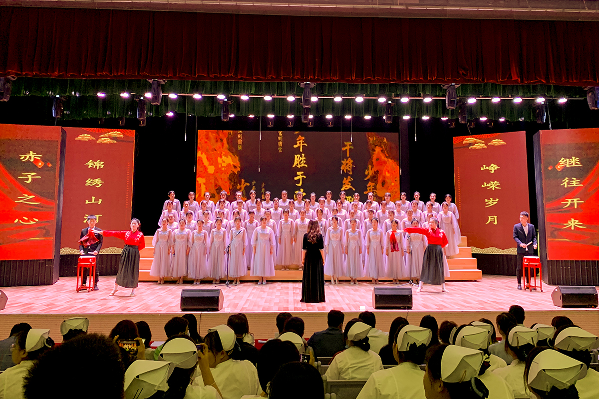为庆祝中国共产党成立100周年,深入开展党史学习教育和红色主题教育,6月8日,由校学生工作处主办的“传唱红色经典,凝聚青春力量”校园红歌合唱比赛在文化中心演播厅举行。