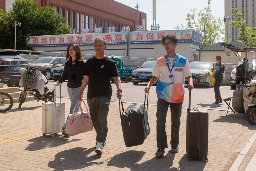学长学姐肩扛手提帮运行李