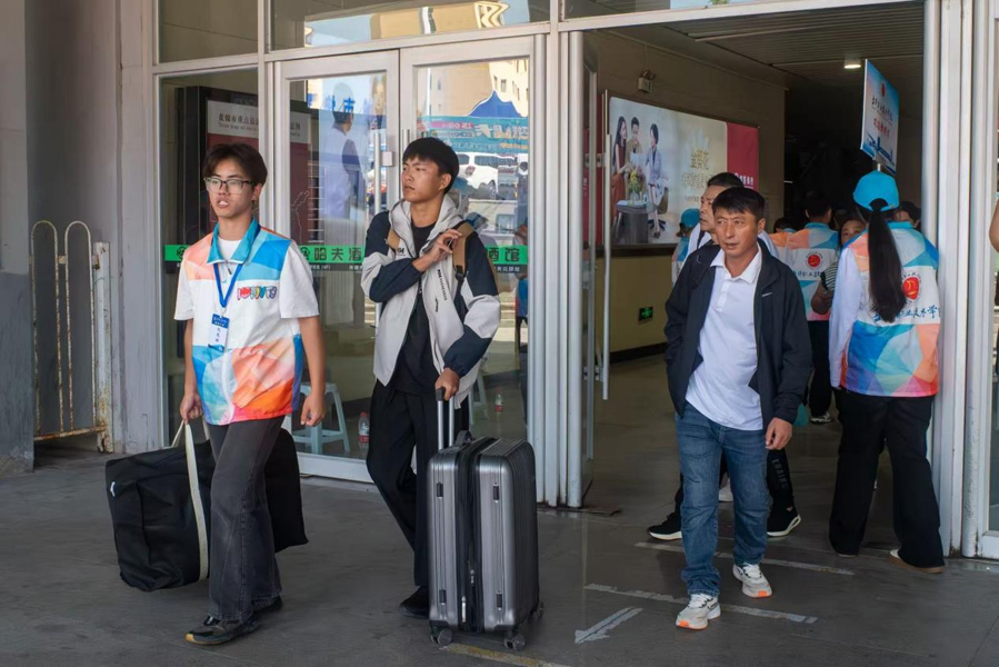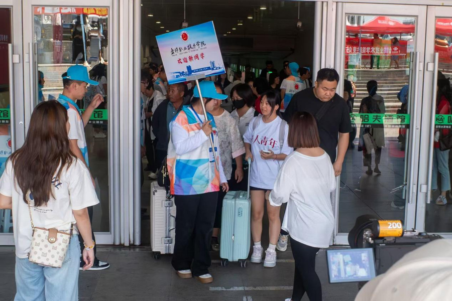 一辆辆迎新大巴穿梭不停