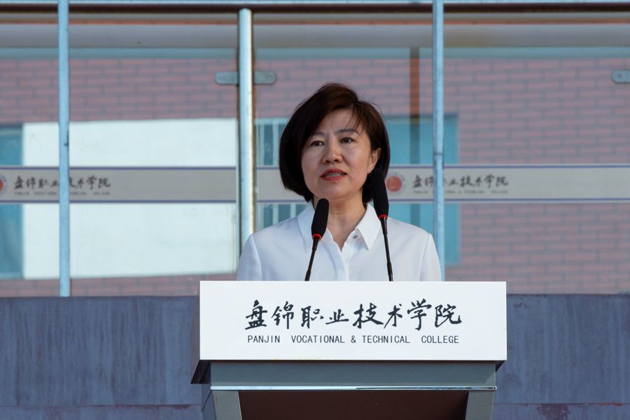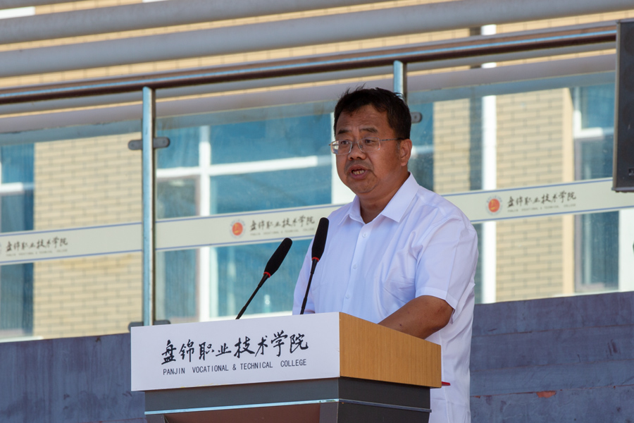 机电工程学院2025级新生张昊泽同学作为参训学生代表上台发言。他表示,军训是大学生活的第一课,不仅是体能的考验,更是意志的磨砺和精神的洗礼。他号召全体同学以军人的标准严格要求自己,服从命令,听从指挥,刻苦训练,以饱满的热情和昂扬的斗志迎接挑战,展现出盘锦职院学子的青春风采。