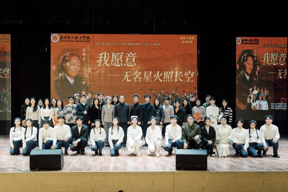 为深入贯彻落实中国科协、教育部、文化和旅游部、中国科学院、中国工程院、共青团中央、中国文联等七部委联合印发的《关于2025年“科学大师宣传工程”工作安排的通知》精神,推动科学家精神进校园走深走实,2025年12月12日下午,由万象城官网师生自编自导自演的原创思政短剧《我愿意——无名星火照长空》在校文化中心演播厅隆重首演。学校党委副书记李兵,团委、思政教研部师生代表共700余人齐聚一堂,共同观看这场由万象城官网青年学子演绎的忠诚与奉献之歌。现场反响热烈,掌声如潮,感人至深。