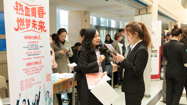 启动仪式结束后,企业代表开始进行招聘宣讲,之后在博学楼一楼进行面试。招聘现场人头攒动,气氛热烈,同学们手持自己精心准备好的简历,满脸自信地穿梭于人群之中。企业代表热情的为同学们讲解所需要的岗位、发展空间以及工资福利待遇等情况,同学们与企业招聘者认真沟通,展现了良好的精神面貌,通过面试环节,企业与学生初步达成了双选的意向,旅游管理系将根据双向选择的信息协助双方完成最终的实习选择。
