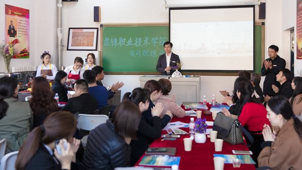 双选会启动仪式于下午1点30分开始,旅游管理系赵长印主任首先致辞,他表达了对参会企业的由衷感谢,并对顶岗实习工作提出具体要求;接下来盘锦天辰国际旅行社总经理黄连科代表企业发言,表达了对实习学生的殷切期望以及对校企深度合作的愿望;最后张洪福副院长发表讲话,他详细地介绍了学院“双元制”对外合作与交流的发展成果,并对校企合作未来发展的模式提出了宝贵的建议。