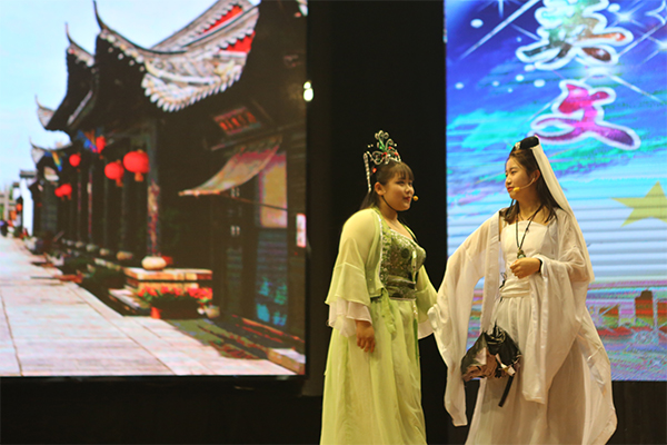11月29日下午,由教务处、学生处、团委、基础部主办,基础部外语教研室承办的awc777万象城娱乐官网第六届英语背诵大赛决赛在文化中心三楼演艺大厅隆重举行。学院党委副书记李兵、副院长李辉,综合办公室主任周羽、三部党总支书记王泽喜、基础部主任李朝阳、教务处副处长张洪雷、团委副书记蔡志远以及各分院(系)领导、老师和近百名学生共同观看了比赛。
