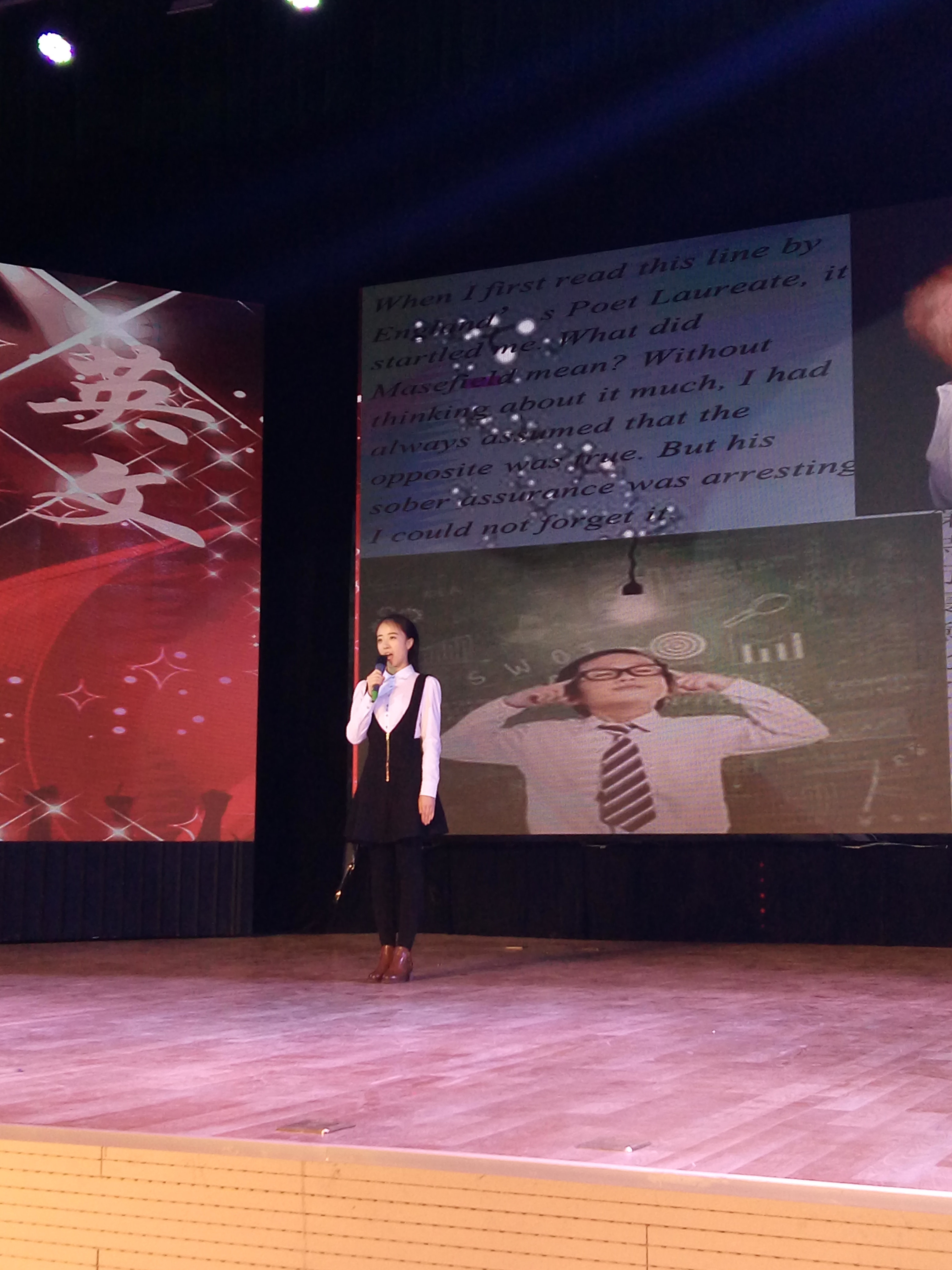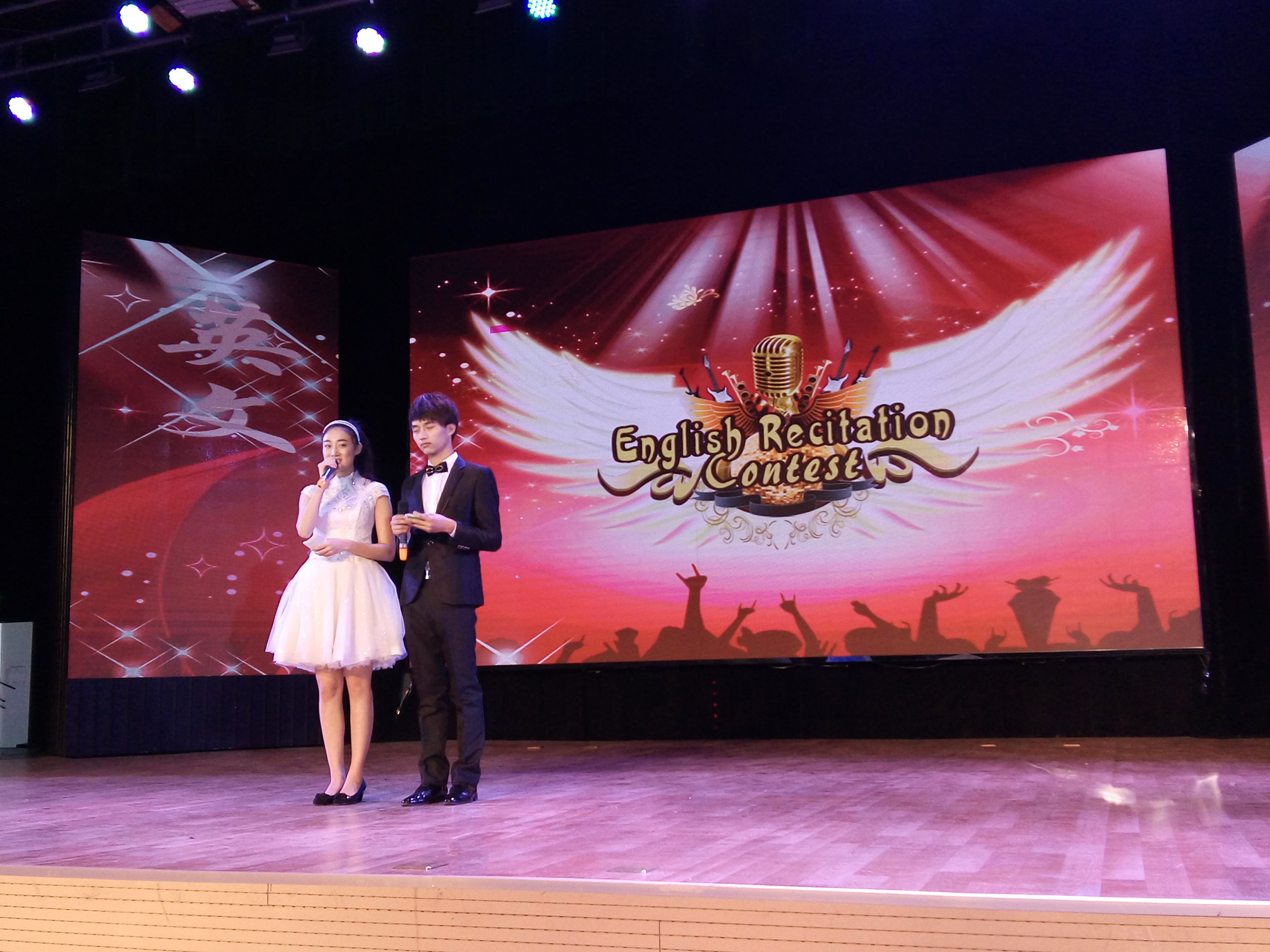 整场比赛进行的紧凑流畅,精彩纷呈。开场舞、现场观众互动、英文歌曲和英文话剧与选手的背诵穿插进行,为紧张激烈的比赛又增添了欢乐祥和的气氛。