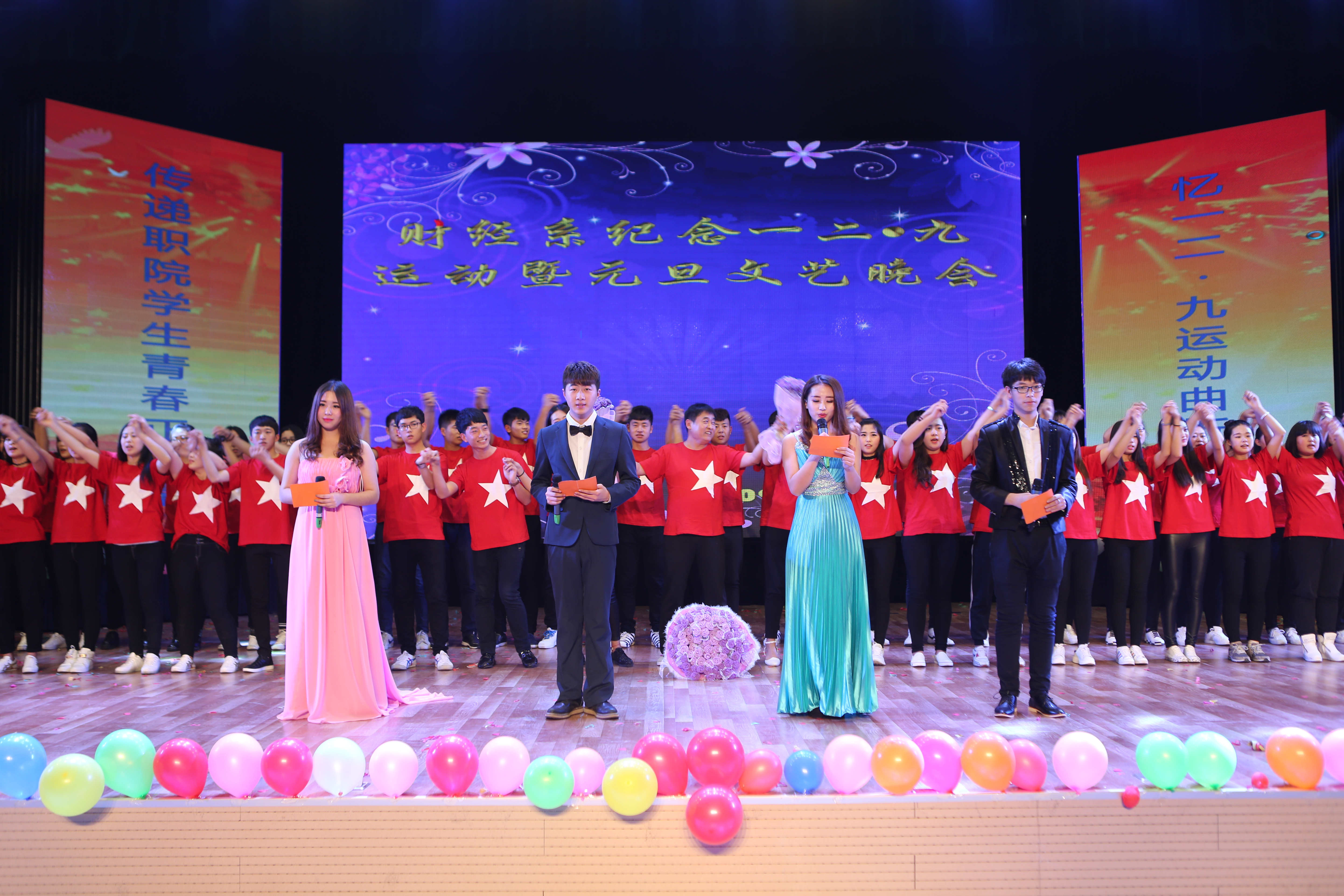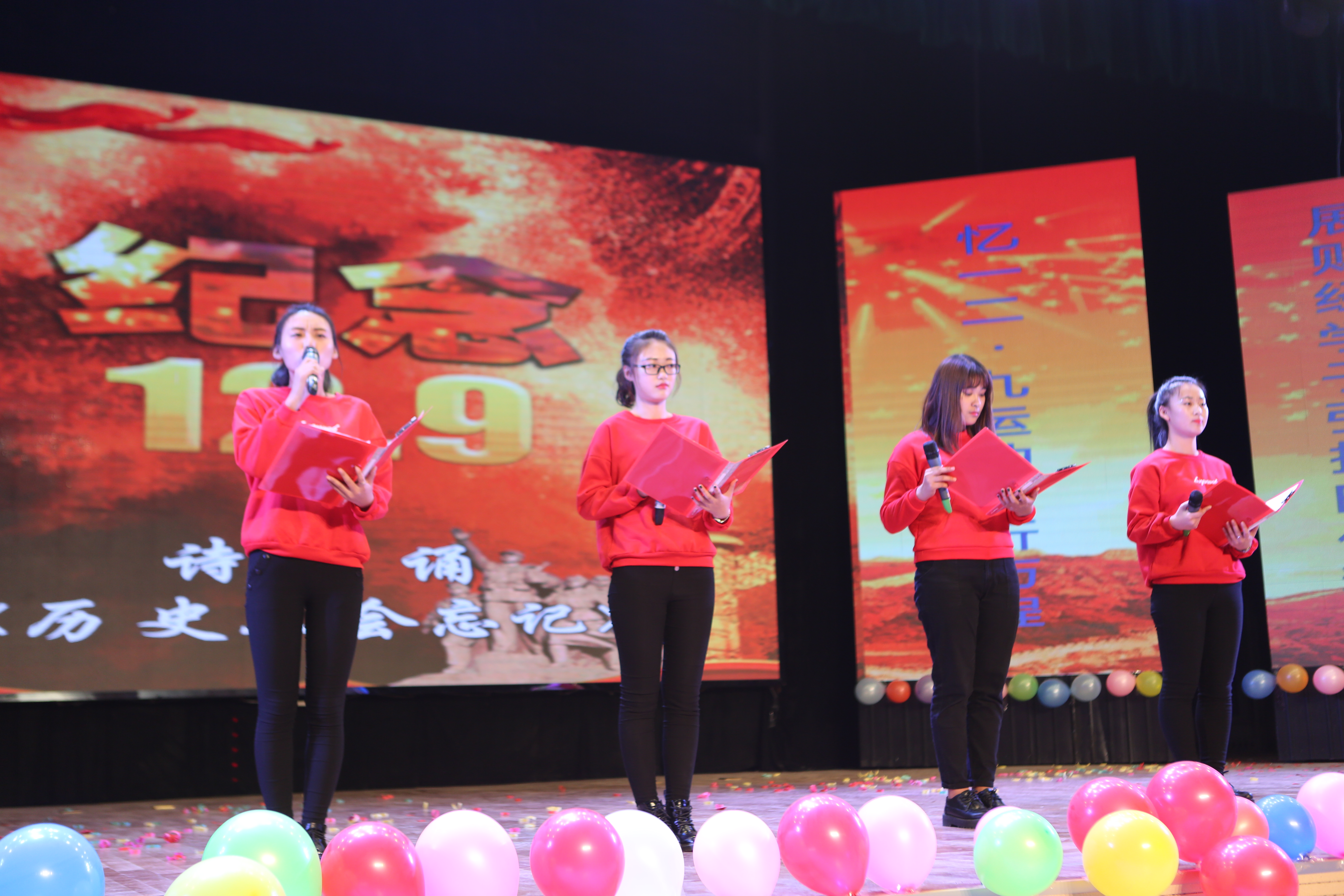2015年12月9日晚,财经系在学院文化中心隆重举行了纪念“一二•九”运动暨元旦文艺晚会”。学院党委副书记李兵,副院长李凯等相关领导应邀出席观看了晚会,系领导班子及全系师生参加了晚会。晚会上,系党总支书记贺丽娜代表系领导班子致词,她阐述了“一二•九”运动的历史意义和现实意义,回顾了过去的一年里,在学院党政领导的关心帮助下在我系所获得成绩,号召全系师生在2016年,牢牢把握建设省级高职示范校的关键之年,发愤图强,改革创新,积极奉献,取得更大的成绩。