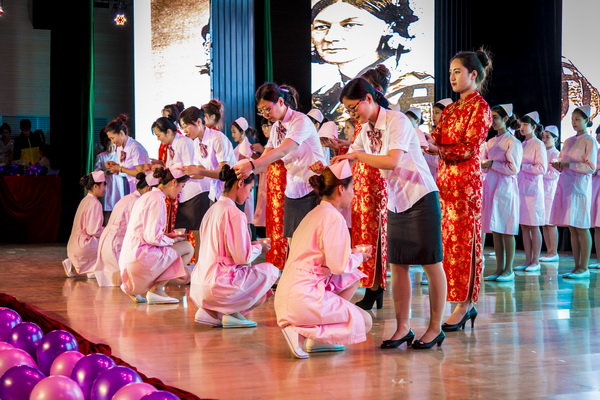 “纷纷红紫已成尘,布谷声中夏令新”。初夏时节,为弘扬南丁格尔无私奉献、救死扶伤的人道主义精神,迎接第104个5•12国际护士节的到来,展示万象城官网护理专业人员的崭新形象,增强护理专业学生的责任感、使命感、荣誉感,2015年5月12日下午,医疗护理分院在学院食堂和文化中心等地开展了以“天使风采”为主题的庆祝国际护士节系列活动。