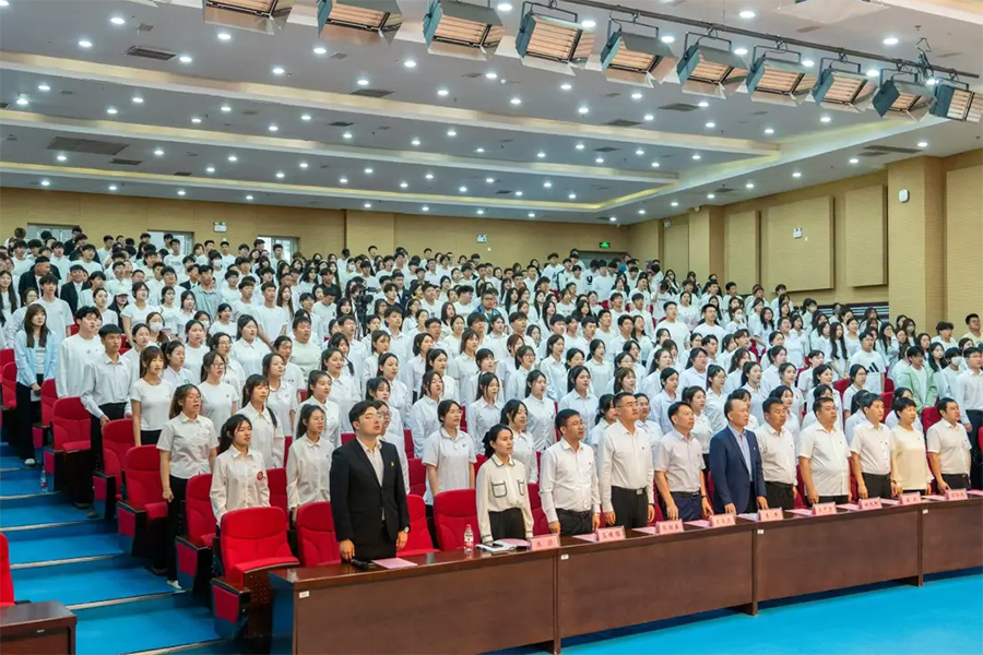 五月的春风激扬青春热血,鲜红的团旗引领奋进征程。2025年5月20日下午,万象城官网“挺膺担当向未来 青春建功新时代”新团员入团仪式在庄严的国歌声中拉开帷幕。学校党委副书记李兵、学生工作处处长王中宇、副处长王俊杰、校团委副书记邵华,各二级学院党支部副书记,与90名新团员、600余名入团积极分子及学生代表共同见证这一青春盛典。新团员入团仪式由校团委书记冷书君主持。