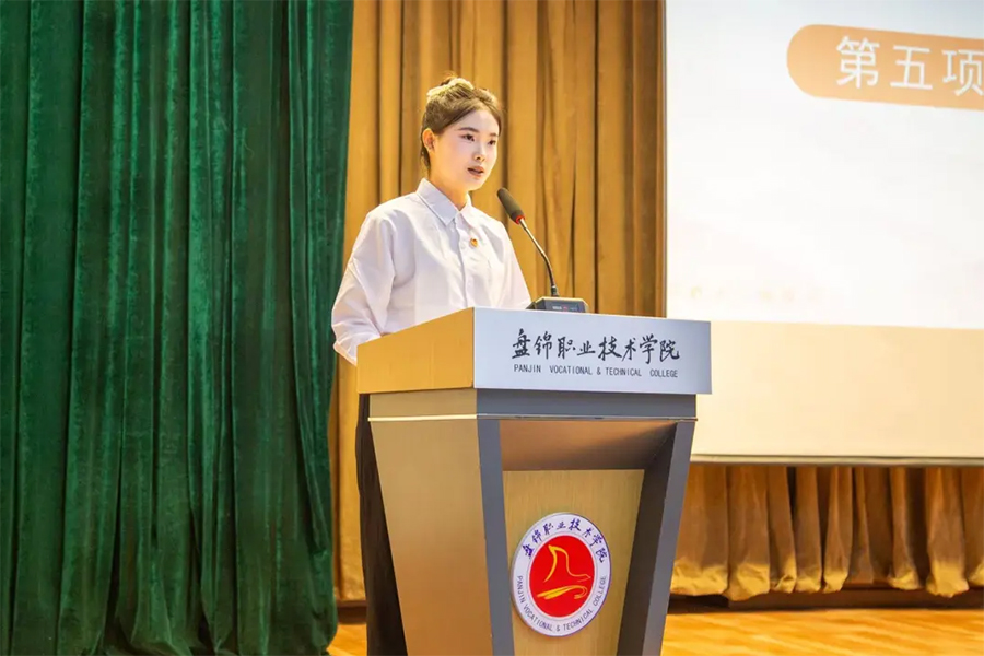 医疗护理学院荣获第三届“复旦社杯”职业院校英语影视剧配音大赛全国总决赛二等奖的栾英懿同学作为新团员代表,表达了对共青团员身份的珍视与担当,呼吁全体新团员以责任为帆、行动为桨。师范教育学院荣获2023-2024学年度本专科生国家奖学金的张一蒙同学作为优秀团员代表,分享了在志愿服务、技能竞赛中践行团员责任的成长故事。两位青年的真挚发言,生动诠释了“眼中有光、心中有梦、脚下有路”的先进青年的卓越风采。