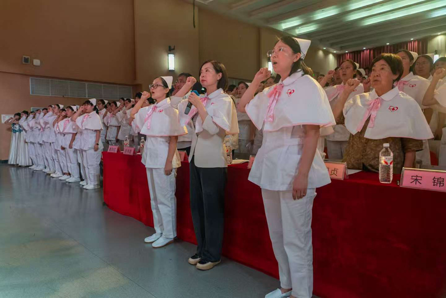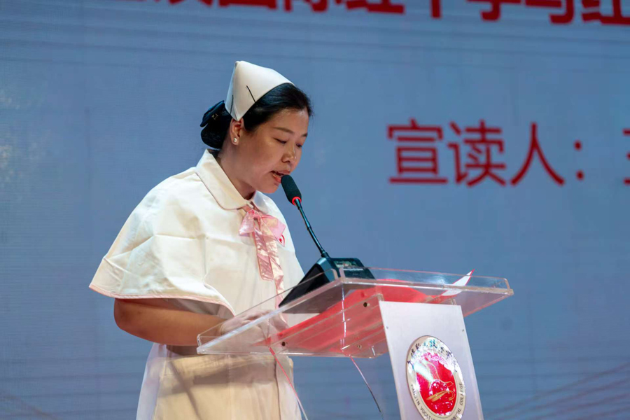 在王新华总护士长的带领下,全体志愿者肃立宣誓,承诺践行南丁格尔精神,恪守志愿誓言,为社会奉献专业与关爱。志愿者代表王莹在发言中分享了对护理志愿服务的热爱与理解,表示将用实际行动传播温暖与希望。