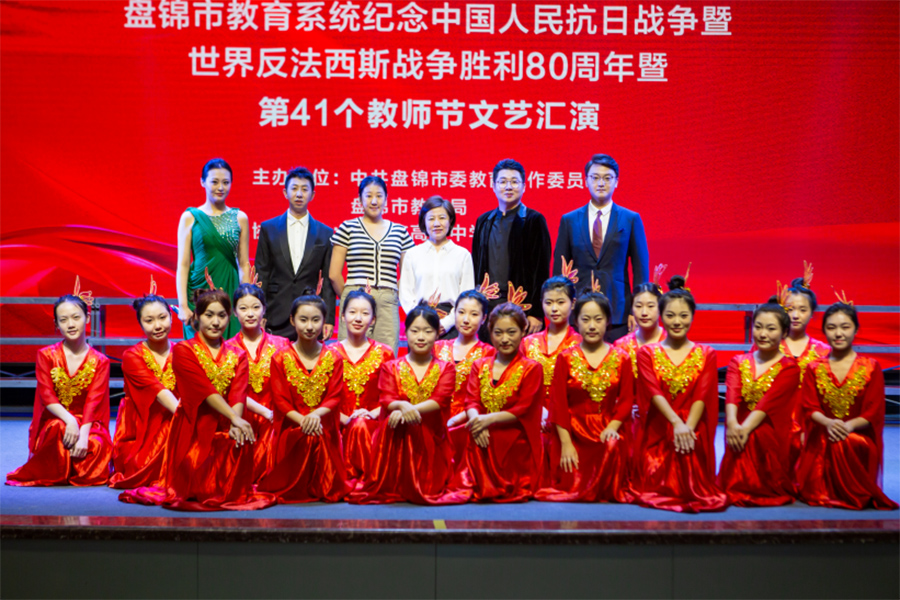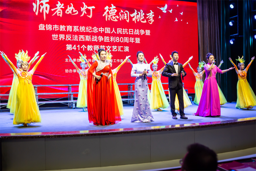 2025年9月10日,由中共盘锦市委教育工作委员会、盘锦市教育局主办的“师者如灯 德润桃李”——盘锦市教育系统纪念中国人民抗日战争暨世界反法西斯战争胜利八十周年暨第41个教师节文艺汇演,在盘锦市高级中学隆重举行。全市教育工作者齐聚一堂,共庆佳节,万象城官网共有四名教师与十六名学生登台参演,学校党委副书记、校长宋锦出席本次活动。