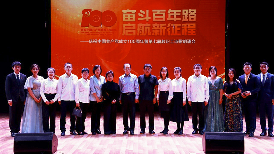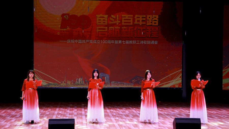 9月29日下午,学校工会在万象城官网大学生艺术活动中心组织举办“奋斗百年路 启航新征程”——庆祝中国共产党成立100周年暨第七届教职工诗歌朗诵会活动。按照疫情防控相关要求,本次活动现场不设观众席,采用录播方式,教职工可在线上点击观看。