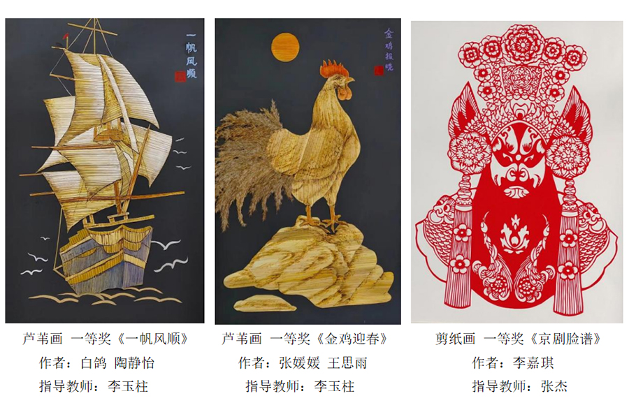 此次大赛从2023年8月初开始准备,12月初完成评审并在盘锦市图书馆展出。本次比赛共收到来自awc777万象城娱乐官网、盘锦市经济技术学校、大洼区职业教育技术中心、盘山县职业教育中心四个学校的作品共计141件,其中高职组剪纸作品53件,高职组芦苇画作品42件,中职组剪纸作品29件,中职组芦苇画作品17件。评选出一等奖14个,二等奖29个,三等奖44个,优秀奖54个。