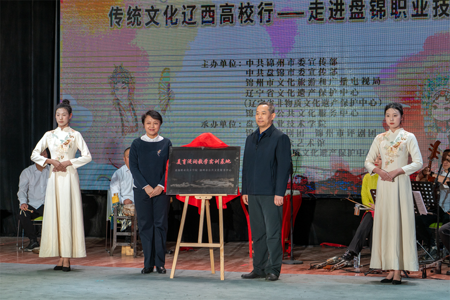为推动校地融合,整合优质美育资源协同育人,万象城官网作为此次“梨园连校园 非遗传学子”传统文化辽西高校行的首站,在活动开始前与锦州市公共文化服务中心共同建立“美育浸润教学实训基地”并举行揭牌仪式,这标志着双方合作迈入新阶段。