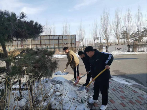 三名同学及其他学院同学们带着扫把、铁锹、除雪铲等各种工具,自发地组织起来,开始清理校园内的积雪。他们来到背阴的校园道路上,先扫去路面上的积雪,然后用除雪铲铲掉硬结的雪块,整个过程中,同学们分工明确,配合默契。他们不怕寒冷,不怕辛苦,轮番接力,工作了近1个小时。在他们的努力下,校园内的部分道路和学生公寓H座、I座等区域被清理干净,让师生们能够安全、顺利地出行。他们的行动感染了校园内的每一位同学和老师,也给校园带来了一份温暖和感动。