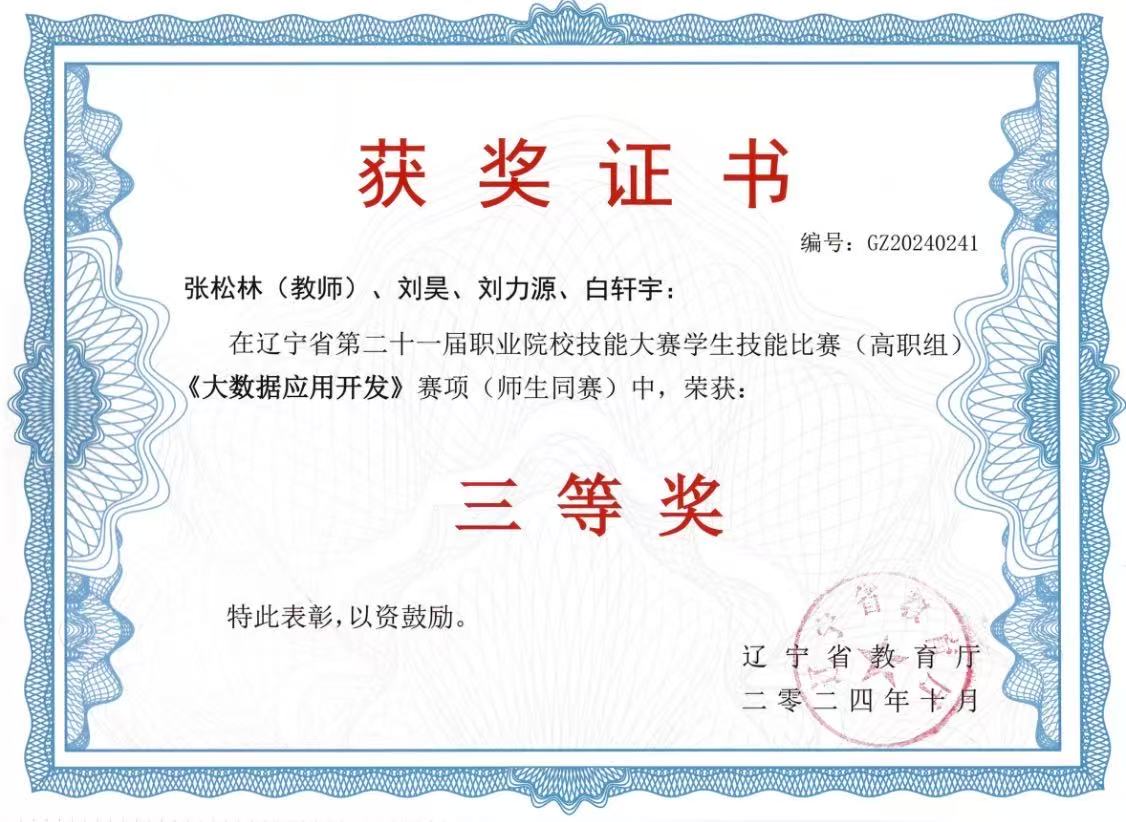 大数据应用开发 省赛 三等奖