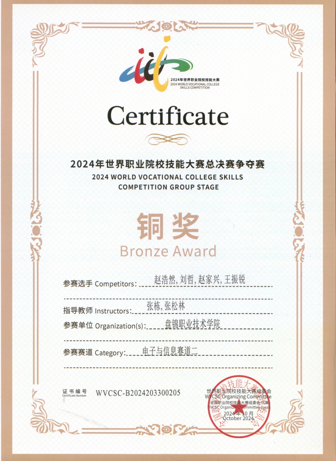 2024年世界职业院校技能大赛总决赛争决赛 铜奖